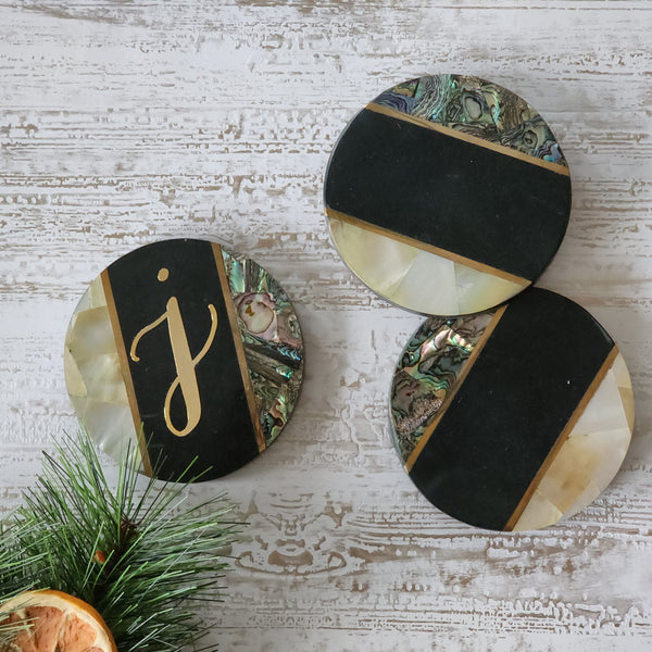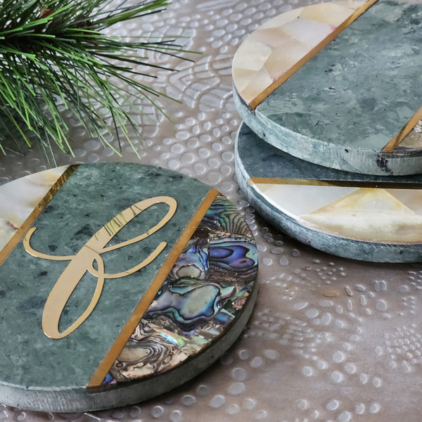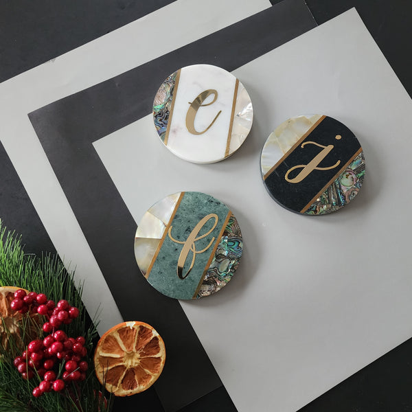 Add a touch of sophistication and glamour to your living space with our pretty Marble Coasters with Abalone, Mother of Pearl and Brass Inlay work.